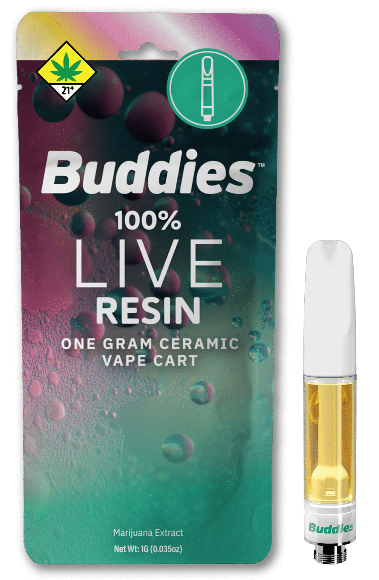 (Buddies) BFF Flavored Live Resin AIO - NO CAP - Neon Cherry Apricot - 1g - (I) - DOH