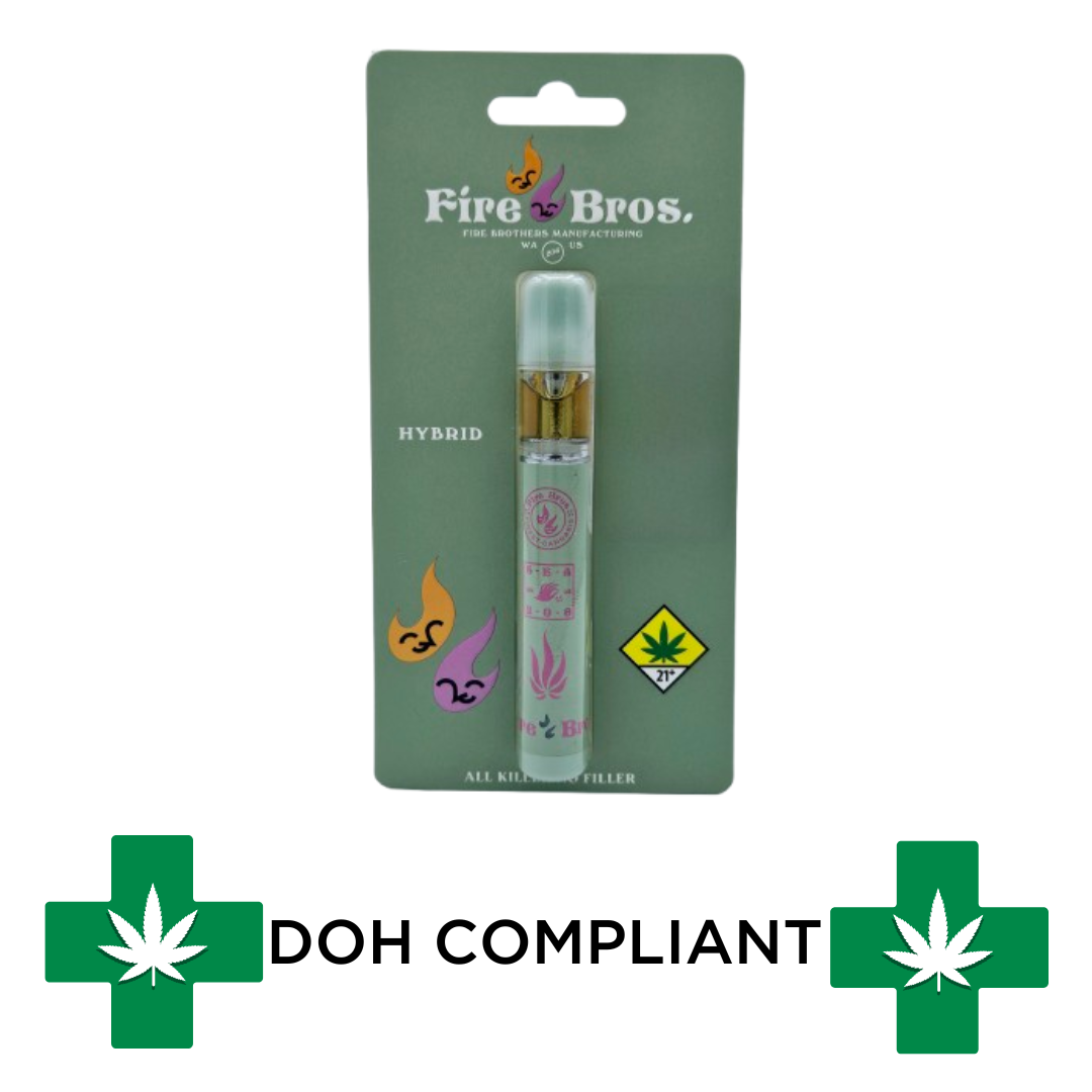 Pricing lands in the premium range for cannabis products. Products run from $8.00 to $430.00. This is primarily a concentrates and flowers brand. Offerings include 584 concentrates, 392 flowers, 229 pre-rolls, and 2 accessories. A few products consistently show up across the most locations. Fire Bros: Cough Trop - Live Resin Disposable (7 stores), Fire Bros: Lemon Fiesta - Live Resin Disposable Cartridge (6 stores), and Fire Bros: Clownfish - Live Resin Disposable Cartridge (6 stores). Fire Bros. has built wide regional reach. Available at 80 dispensaries in Washington.