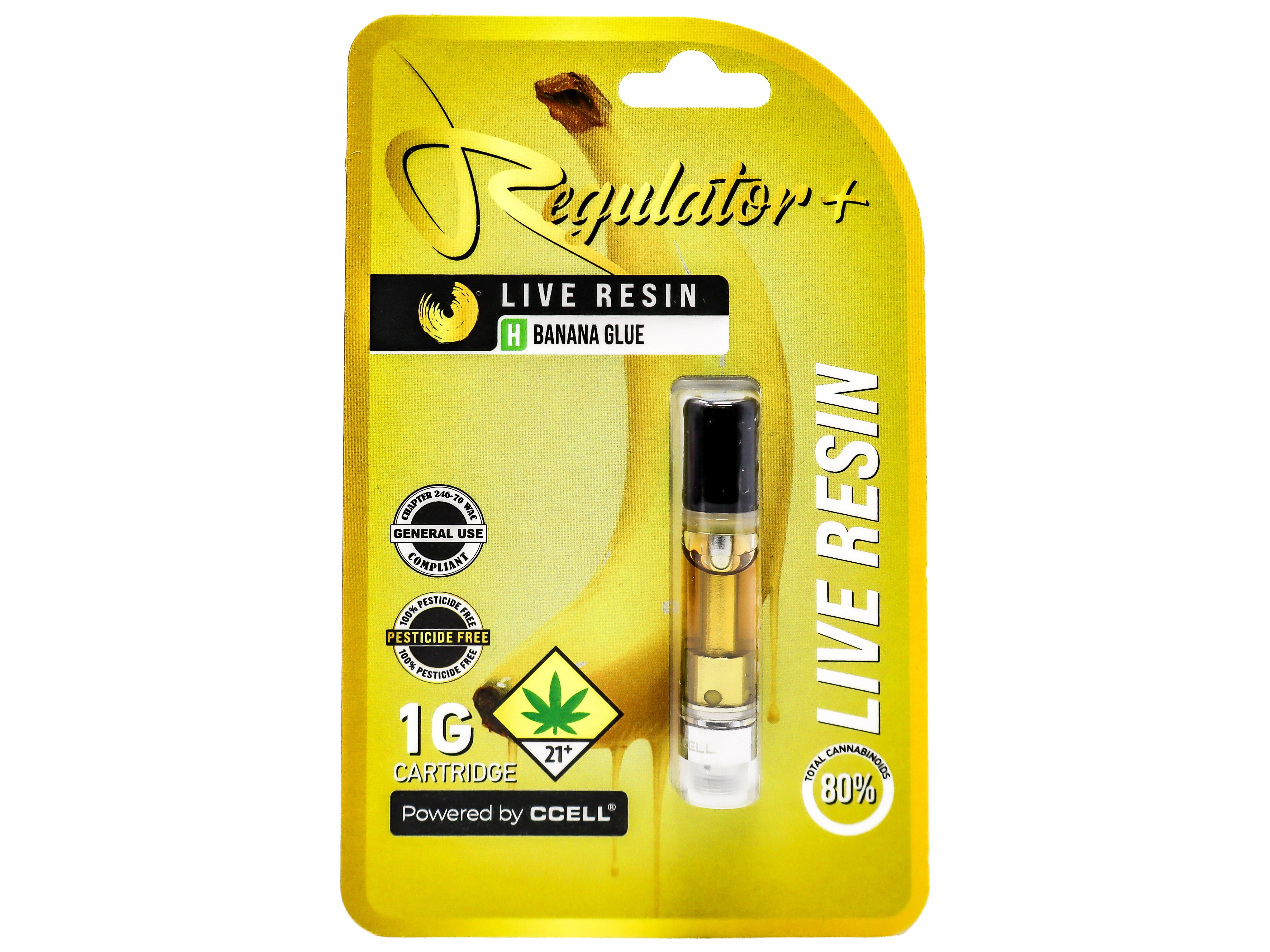 (Regulator) Plus Live Resin Vape Cart - Banana Glue (Hybrid) - - 80% *DOH Compliant